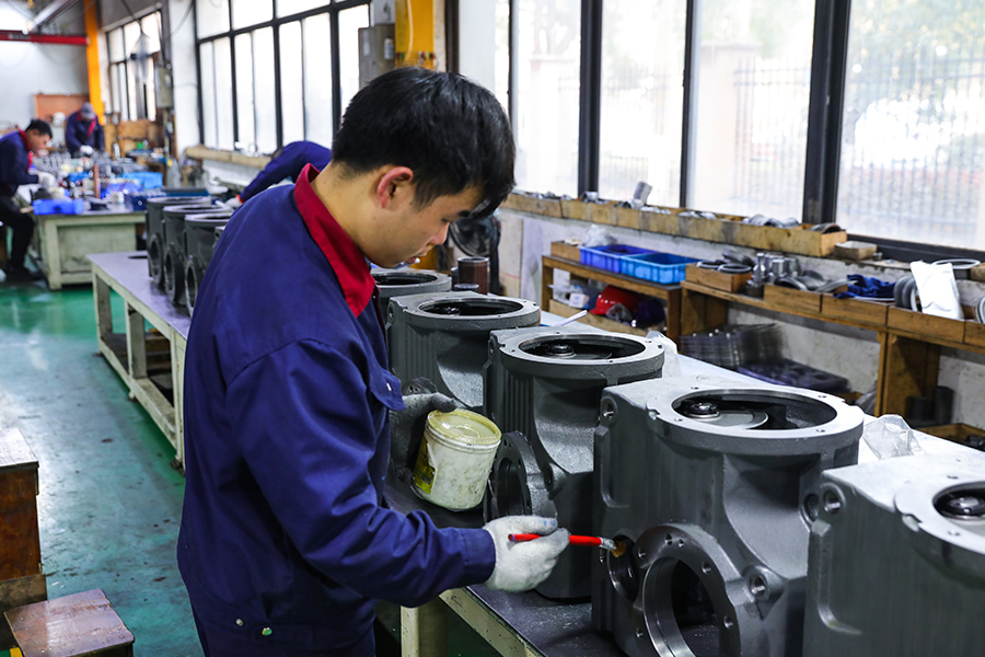 デクインテリジェントドライブは、焼き入れ減速機全般を専門に製造する工場です。主な製品は、DPKシリーズかさ歯車減速機、DPRシリーズ同軸はすば歯車減速機、DPFシリーズ平行軸はすば歯車減速機、DPSシリーズはすば歯車ウォーム減速機、非標準歯車減速機、その他4シリーズ数百種類です。